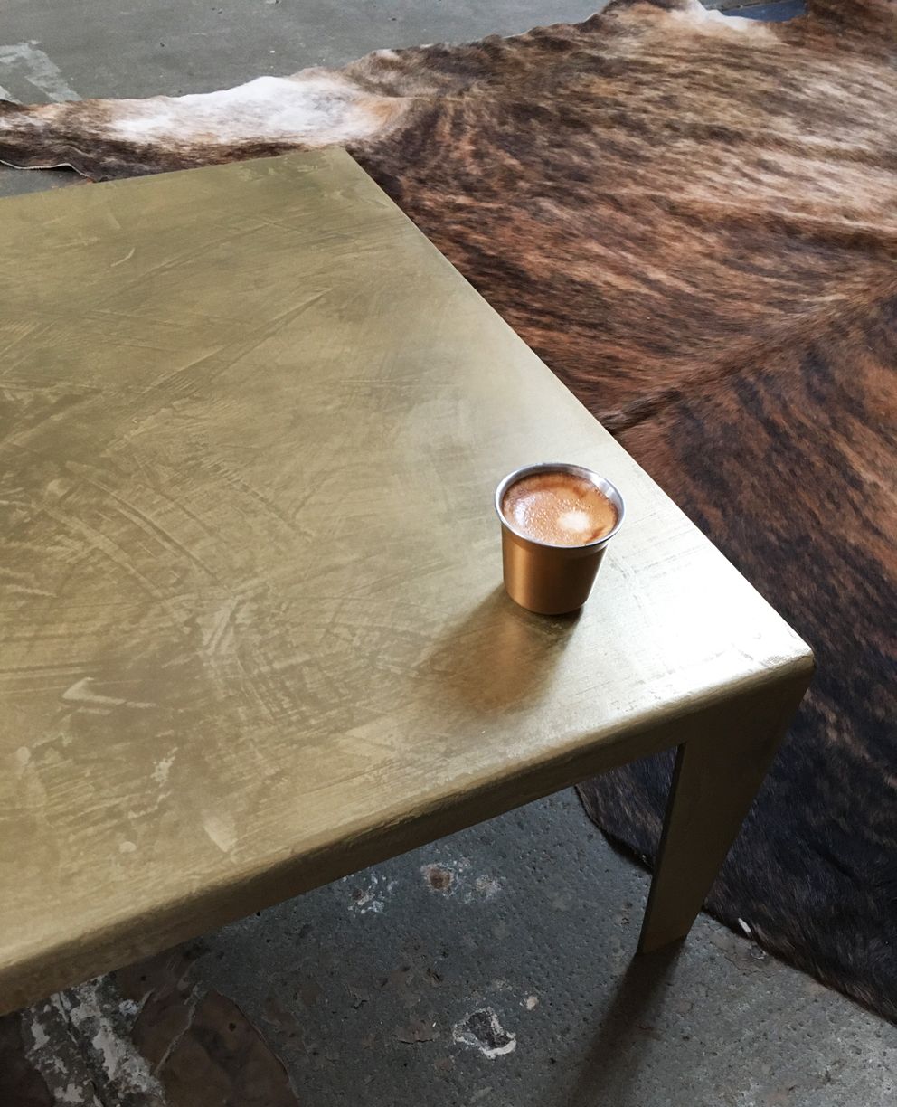 Table basse en acier pliée. Dimensions (Lxlxhxep) : 1250 x 650 x 300 x 5 mm.
